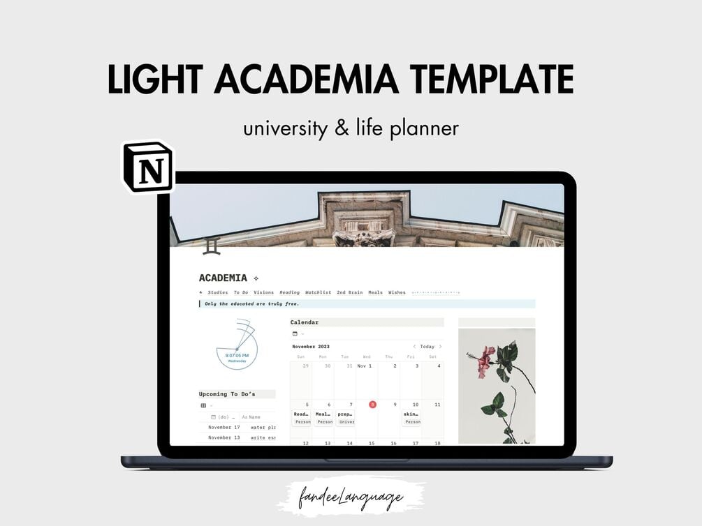 Notion Light Academia Template | Notion Planner, Students, Study Planner