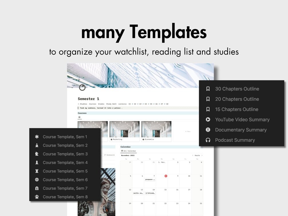 Here, you can structure your studies, your lectures, your courses, your wishes, your reading and much more.
